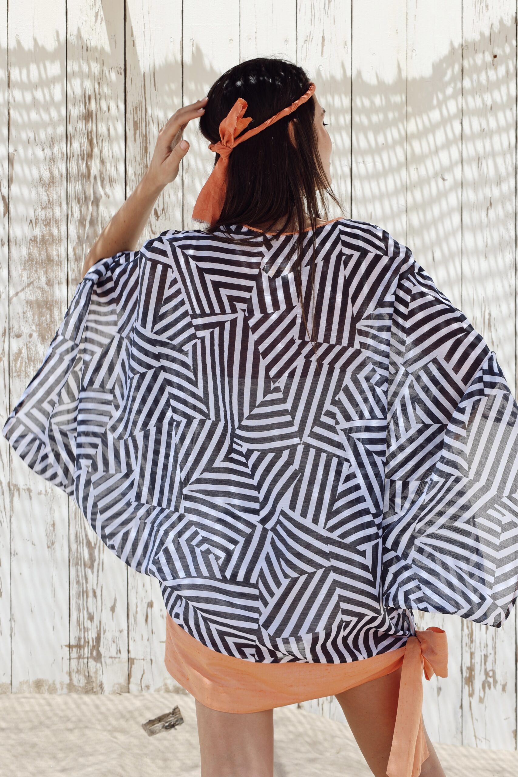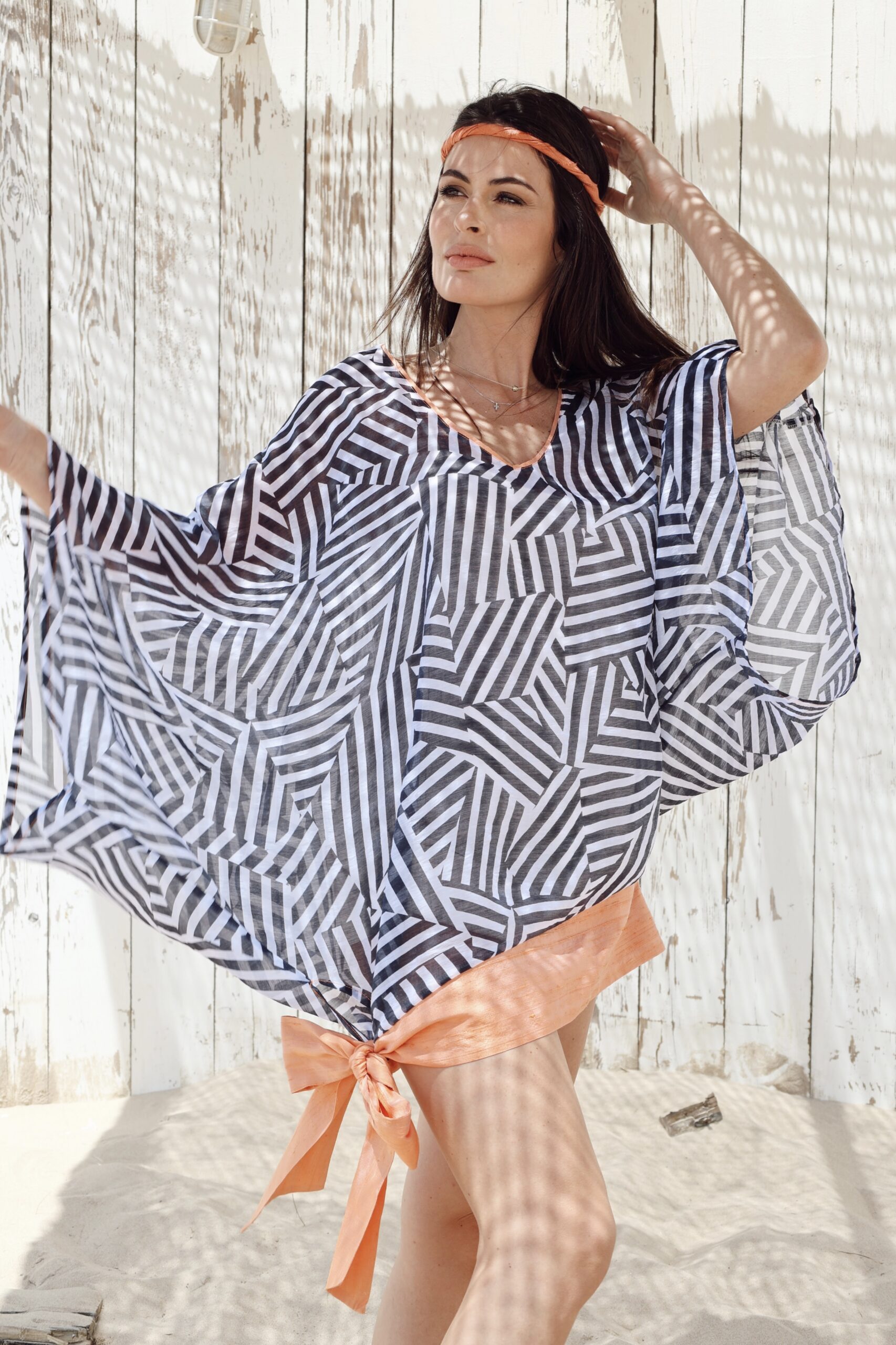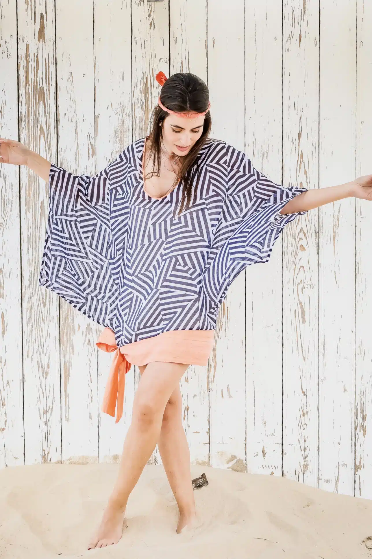 Robe courte extra large style tunique avec décolleté en V et nœud latéral.